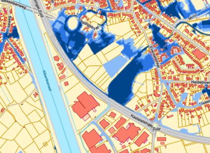 In Beringen staat men voor een vergelijkbare keuze. De overstromingskaart toont ook daar een helder beeld: donkerblauwe zones langs de Kasteletsingel. De Bouwmeesterscan was glashelder: dit gebied moet openblijven als buffer, niet omdat het een mooi plaatje oplevert, maar omdat het een essentiële functie vervult in de waterhuishouding. Een buffer beschermt wat er al staat, vangt neerslagpieken op en voorkomt dat reeds bestaande wijken blank komen te staan.